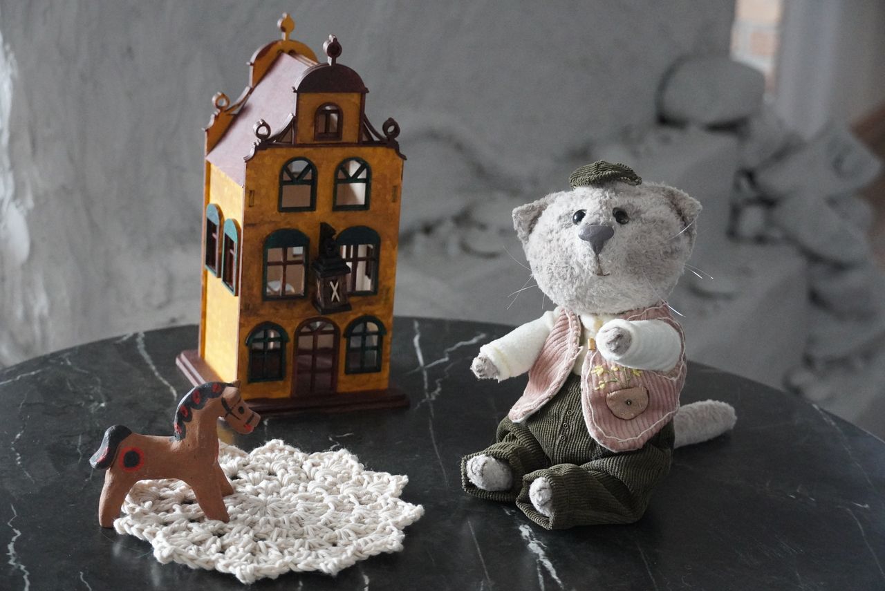 Котик изготовлен согласно канонам игрушек Тедди из качественных материалов